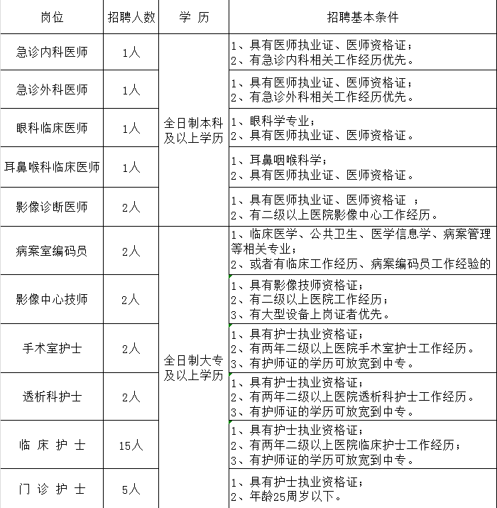 遼陽市中心醫(yī)院新城醫(yī)院經(jīng)市政府批準(zhǔn),按“三甲醫(yī)院”標(biāo)準(zhǔn)建設(shè)的非營利性綜合醫(yī)院,2014年3月開工建設(shè),2016年10月投入使用。醫(yī)院占地面積5.3萬平方米,投資4.5億元,開設(shè)床位900張,手術(shù)間11間。醫(yī)院設(shè)置科系齊全,設(shè)有心血管內(nèi)科、呼吸、消化、風(fēng)濕科、神經(jīng)內(nèi)科、腎內(nèi)、內(nèi)分泌科、腫瘤內(nèi)科、普外科、骨科、手足顯微外科、泌尿外科、胸科及神經(jīng)外科、肛腸科、婦產(chǎn)科、兒科、眼科、耳鼻喉科、口腔科、透析科、重癥醫(yī)學(xué)科(ICU)、中醫(yī)科、皮膚科等科室。遼陽市中心醫(yī)院肛腸外科、體檢中心整建制劃撥到我院。2019年8月份普外(肛腸科)被評為“遼陽市名科”。醫(yī)院匯聚省內(nèi)眾多知名專家醫(yī)療團隊為遼陽市民提供高質(zhì)量醫(yī)療服務(wù)。醫(yī)院始終堅持“盡我所能,呵護健康”的辦院宗旨。根據(jù)醫(yī)院快速發(fā)展需要,現(xiàn)面向社會公開招聘醫(yī)療技術(shù)人員。誠邀專業(yè)技術(shù)人才加入我們共同發(fā)展,現(xiàn)將招聘事宜公告如下。