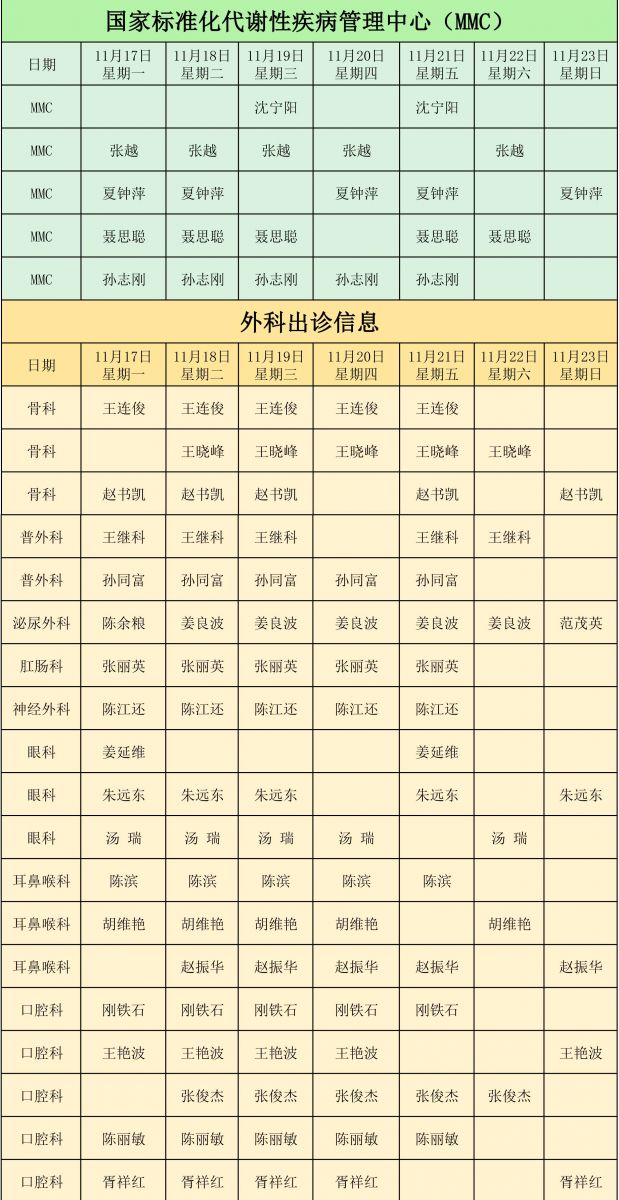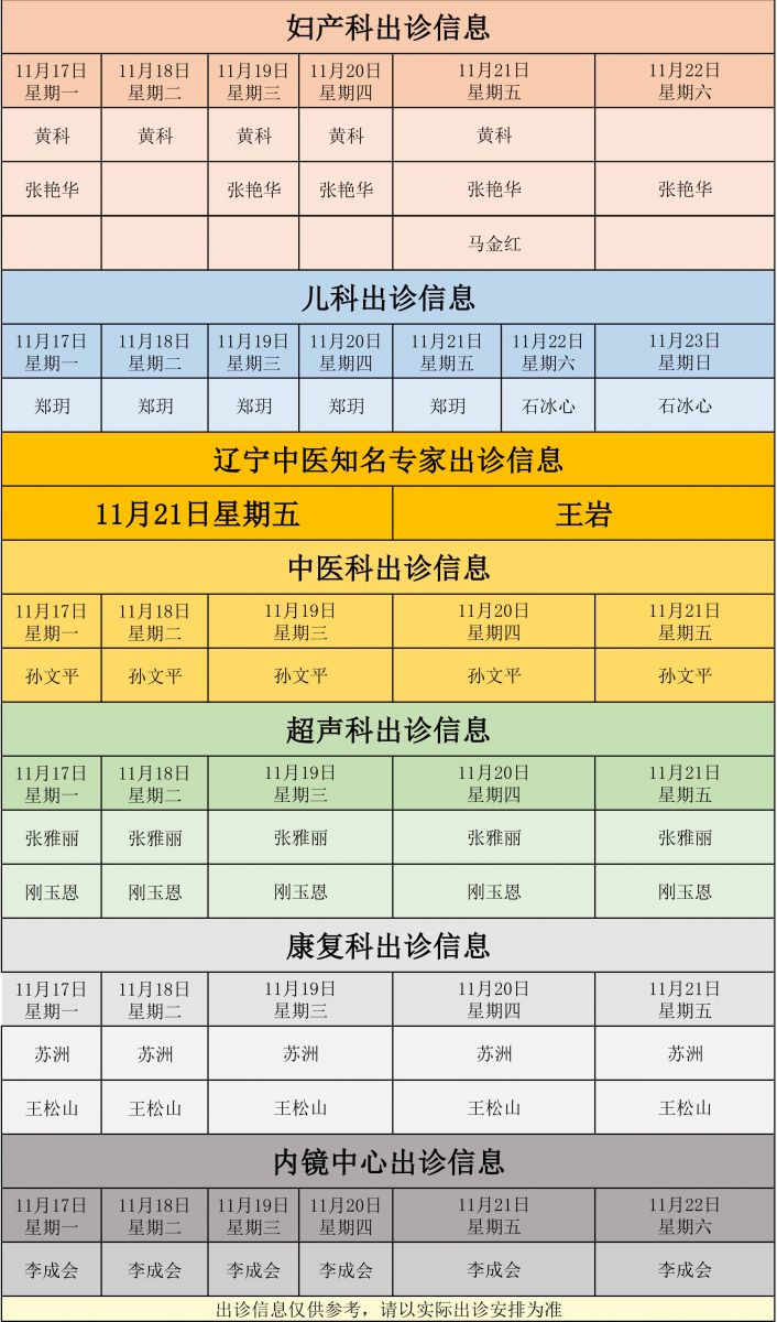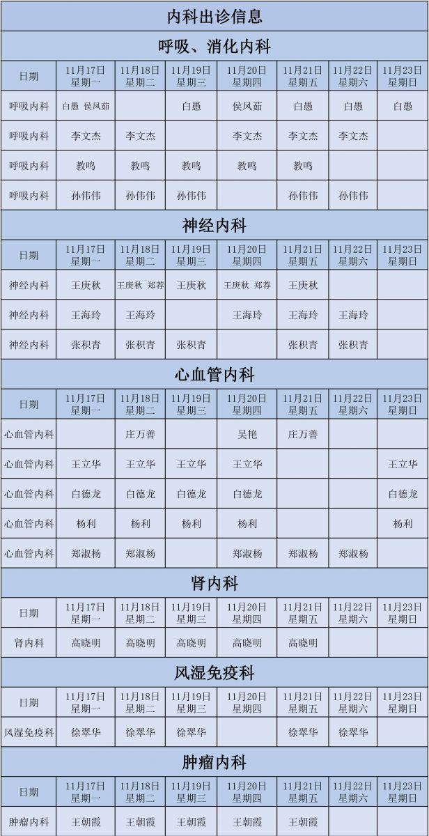 新城醫(yī)院11月17日至11月23日門診出診信息