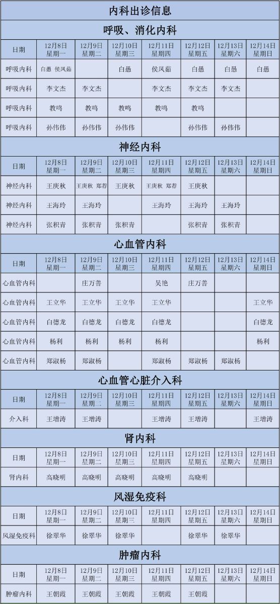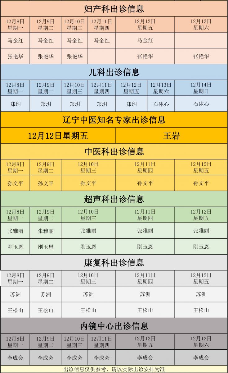 遼陽市中心醫(yī)院新城醫(yī)院12月8日至12月14日門診出診信息